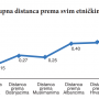Prema njegovim riječima, kada se uporedi stepen distanciranja pripadnika različitih etničkih grupacija, proizilazi da su u ovogodišnjem istraživanju najveći stepen distanciranja iskazivali Srbi, slijedili su Bošnjaci i Muslimani, te Albanci, a najniži stepen distanciranja u odnosu na ostale se mjeri kod Crnogoraca.